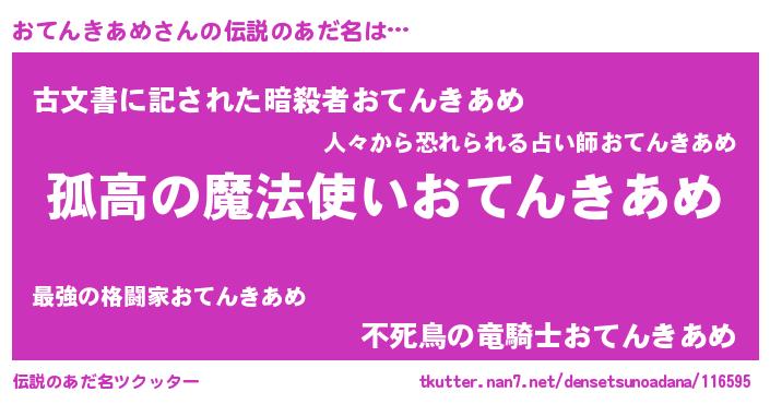 | 意味不明あだ名 | 『自称おてんきあめ』 |