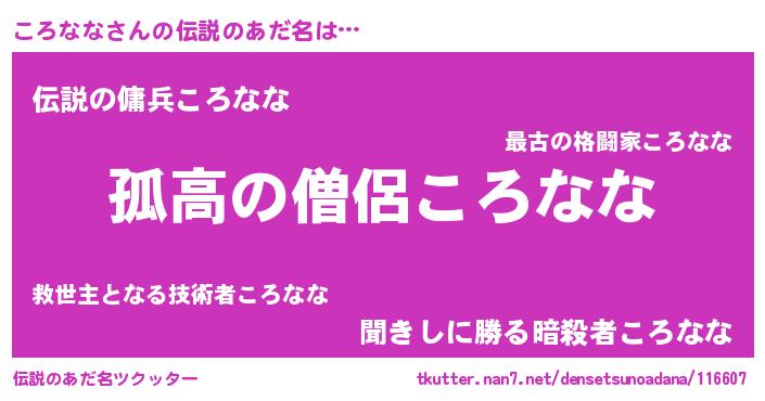 | 意味不明あだ名 | 『自称ころなな』『ペロリンころなな』 |