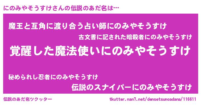 | 意味不明あだ名 | 『自称にのみやそうすけ』 |