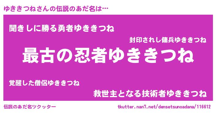 | ファンタジー風あだ名 | 『エターナルユキキツネー』『ゼユキトゥ』 |