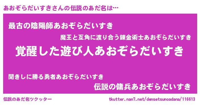 | 意味不明あだ名 | 『とにかく怪しいあおぞらだいすき』 |