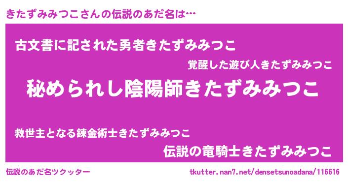 | ファンタジー風あだ名 | 『エターナルキタズミミツコー』 |