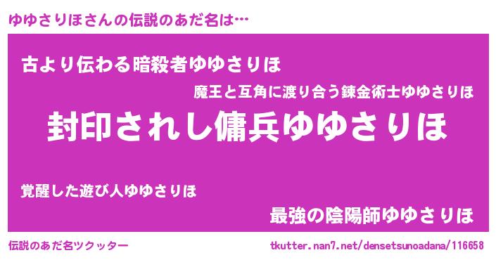 | ヒーロー風カッコイイあだ名 | 『スーパーユユサリホ』『ネオユユサリホ』 |