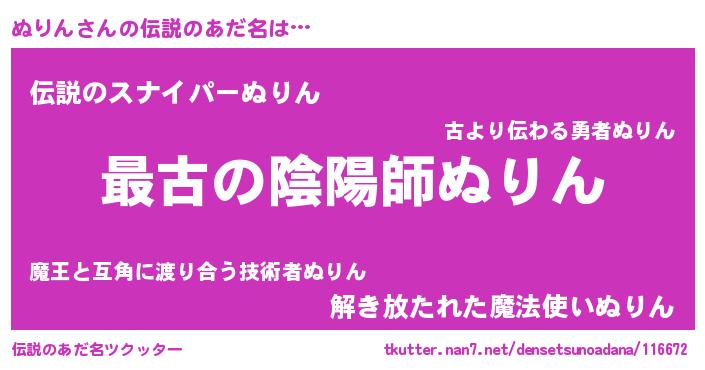 | ファンタジー風あだ名 | 『エターナルヌリンー』『ゼヌリトゥ』 |