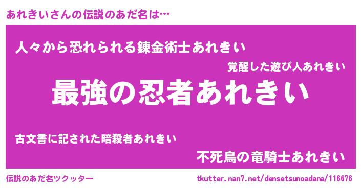 | 意味不明あだ名 | 『住所不定無職あれきい(50歳)』 |