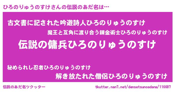 | ヒーロー風カッコイイあだ名 | 『スーパーヒロノリュウノスケ』 |