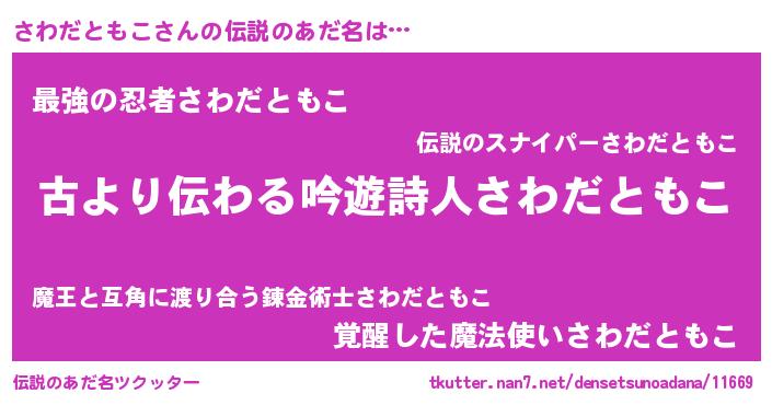 | ヘコむあだ名 | 『さわだともこ(笑)』『酢こんぶ』 |