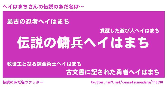 | 胡散臭い通販商品みたいなあだ名 | 『必ず成功する水晶球…その名も「ヘイはまち」』 |