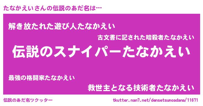 | 胡散臭い通販商品みたいなあだ名 | 『必ず成功する霊験あらたかなお札…その名も「たなかえい」』 |