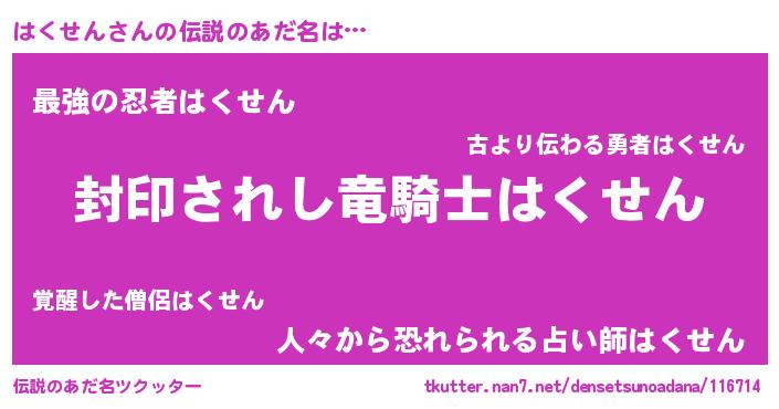 | ヒーロー風カッコイイあだ名 | 『スーパーハクセン』『究極戦士ハクセン』 |