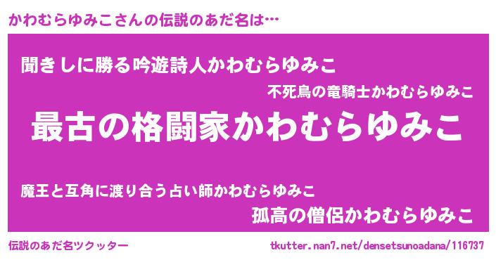 | 意味不明あだ名 | 『住所不定無職かわむらゆみこ(8歳)』 |