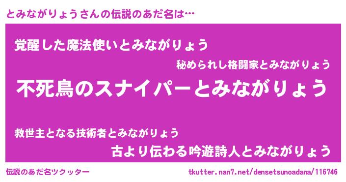 | ヒーロー風カッコイイあだ名 | 『スーパートミナガリョウ』 |
