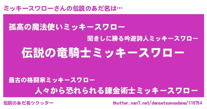 | ヒーロー風カッコイイあだ名 | 『スーパーミッキースワロー』 |