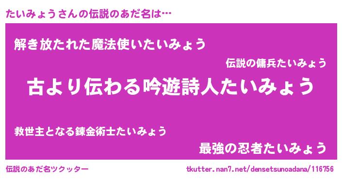 | 意味不明あだ名 | 『永久保存たいみょう』 |