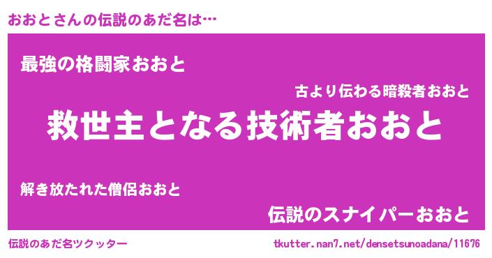 | ヒーロー風カッコイイあだ名 | 『天空の使者おおと』『最強戦士オオト』 |