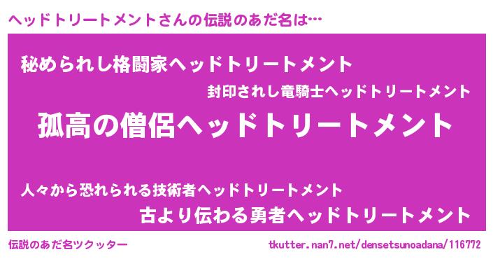 | ポケモン風あだ名 | 『ヒヘッドトリートメント』『ヘッドダネ』 |