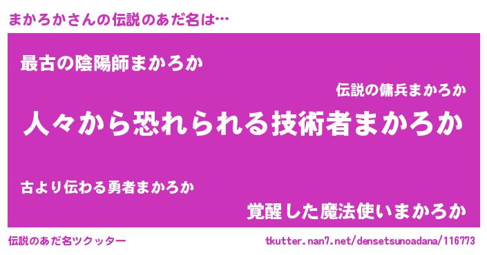 | ヒーロー風カッコイイあだ名 | 『正義の使者まかろか』『仮面マカダー』 |