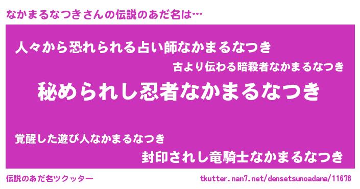 | 欧米人風あだ名 | 『アンジェラ・なかまるなつき』 |