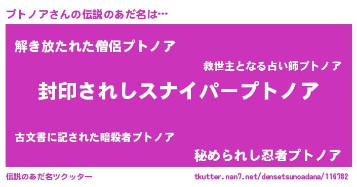 | ヒーロー風カッコイイあだ名 | 『スーパープトノア』『炎刃騎士プト』 |