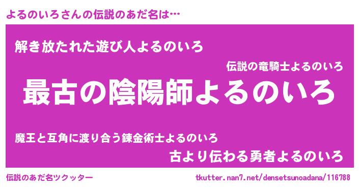 | ポケモン風あだ名 | 『ヨルノダネ』『ヒヨルノイロ』 |