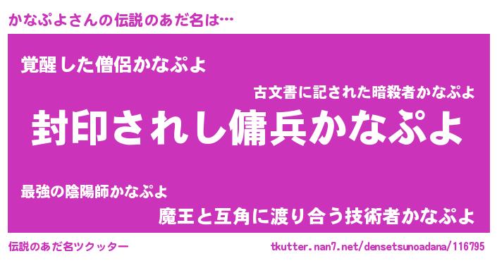 | 胡散臭い通販商品みたいなあだ名 | 『億万長者になれる水晶球…その名も「かなぷよ」』 |