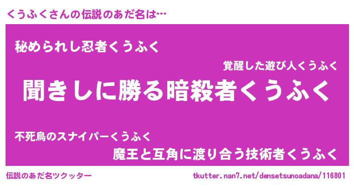 | ヒーロー風カッコイイあだ名 | 『超時空戦士クウフク』『仮面クウダー』 |
