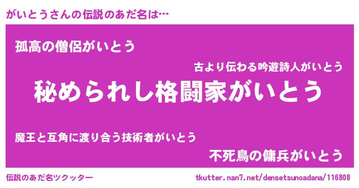 | 意味不明あだ名 | 『がいとうフォーエバー』 |