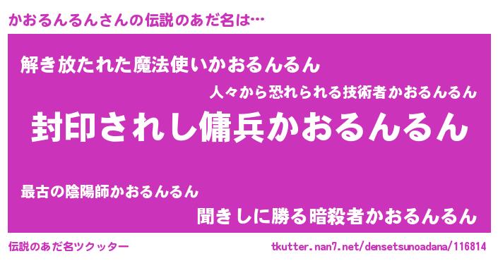 | 男性向けラノベタイトル風あだ名 | 『カオルンルンアートオンライン』 |