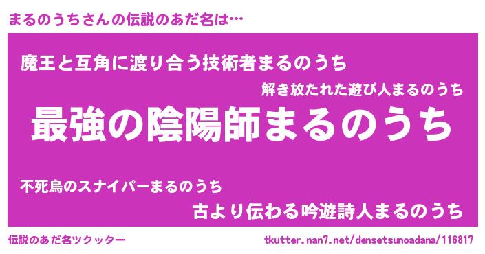 | 男性向けラノベタイトル風あだ名 | 『まるのうちに滅ぼされるだけの簡単なお仕事です』 |
