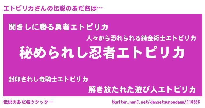 | ヒーロー風カッコイイあだ名 | 『ウルトラエトピリカマン』 |