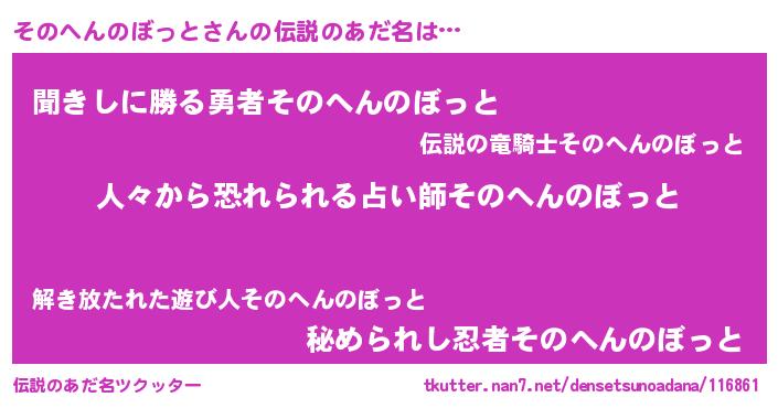 | ヒーロー風カッコイイあだ名 | 『正義の使者そのへんのぼっと』 |