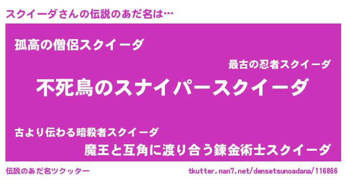 | 意味不明あだ名 | 『ペロリンスクイーダ』『自称スクイーダ』 |