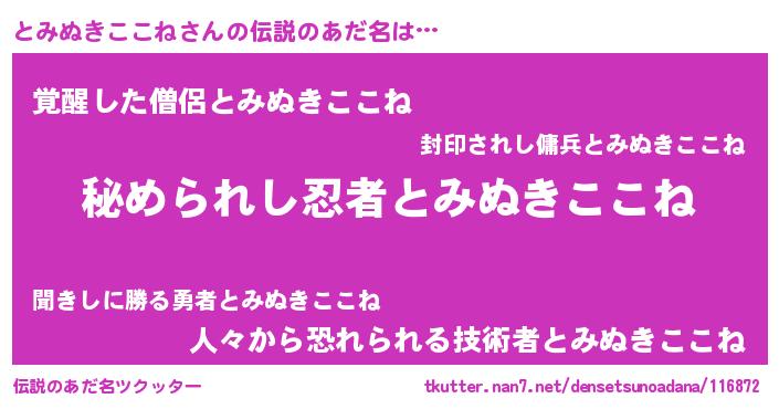 | ファンタジー風あだ名 | 『エターナルトミヌキココネー』 |