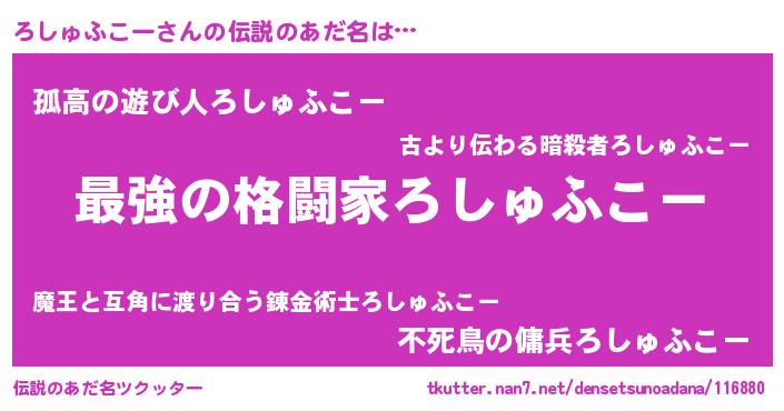 | 胡散臭い通販商品みたいなあだ名 | 『あなたにだけ特別に提供する100年もののヴィンテージワイン…その名も「ろしゅふこー」』 |