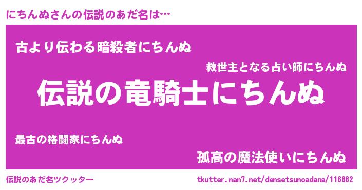 | 男性向けラノベタイトル風あだ名 | 『にちんぬの憂鬱』『緋弾のニチンヌ』 |