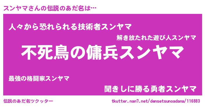 男性向けラノベタイトル風あだ名 | 『魔弾の王とスンヤマ』『スンヤマの憂鬱』 |