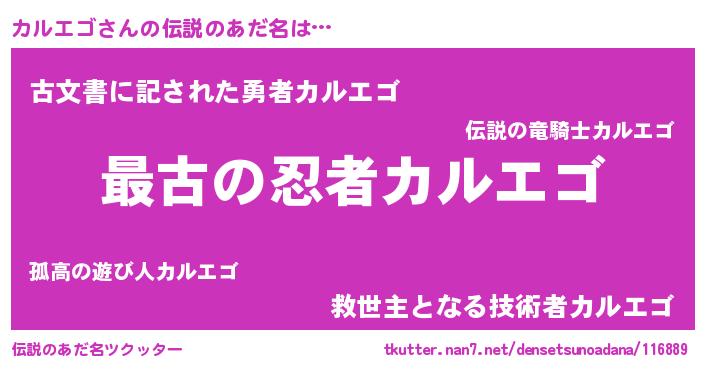 | ヒーロー風カッコイイあだ名 | 『ウルトラカルエゴマン』『ネオカルエゴ』 |