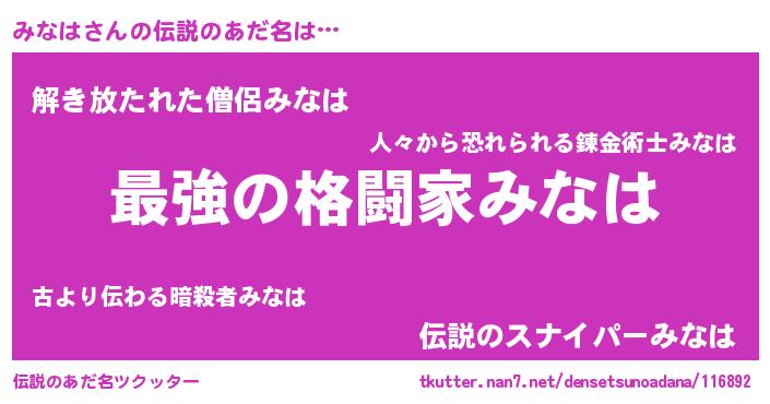 | ポケモン風あだ名 | 『ミナキング』『ミナハダネ』 |