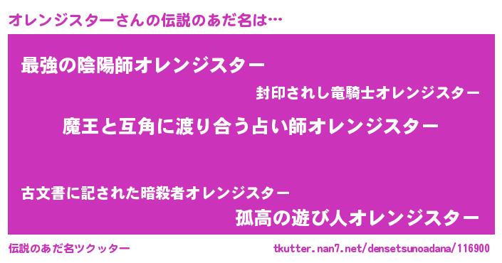 | 欧米人風あだ名 | 『オレンジスター・ステッグマイヤー』 |
