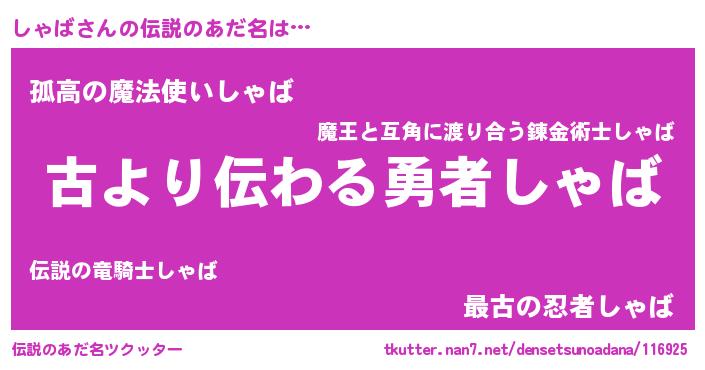 | ヒーロー風カッコイイあだ名 | 『ネオシャバ』『幻影騎士シャ』 |