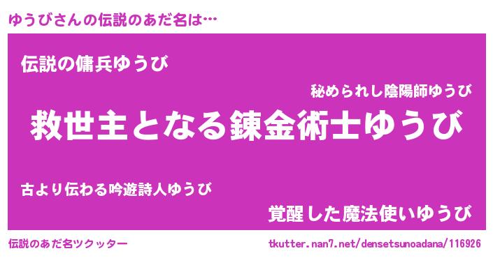 | ポケモン風あだ名 | 『ユックウザ』『ユウチュウ』 |