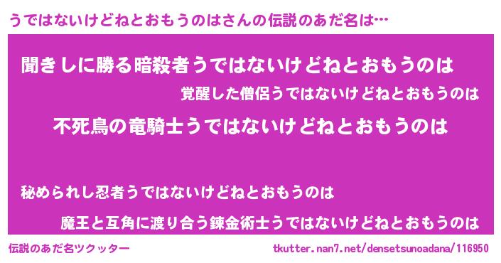 | 男性向けラノベタイトル風あだ名 | 『うではないけどねとおもうのはの憂鬱』 |