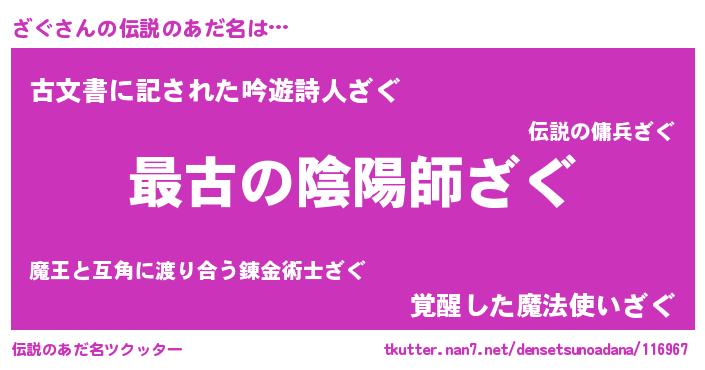 | ヒーロー風カッコイイあだ名 | 『ウルトラざぐマン』『ネオザグ』 |