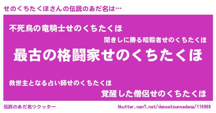 | ヒーロー風カッコイイあだ名 | 『ウルトラせのくちたくほマン』 |