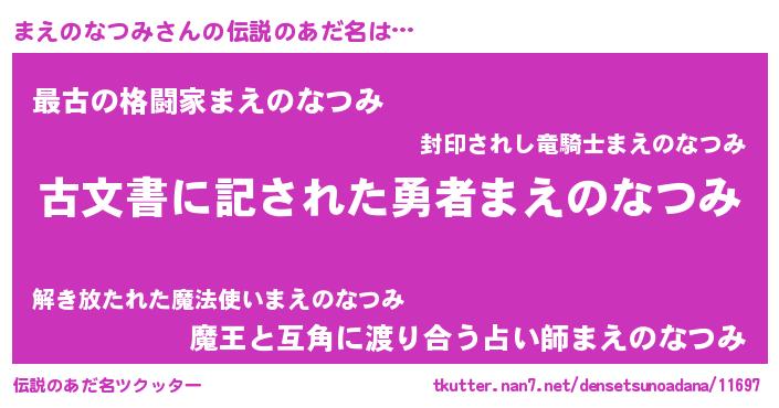 | 意味不明あだ名 | 『住所不定無職まえのなつみ(77歳)』 |