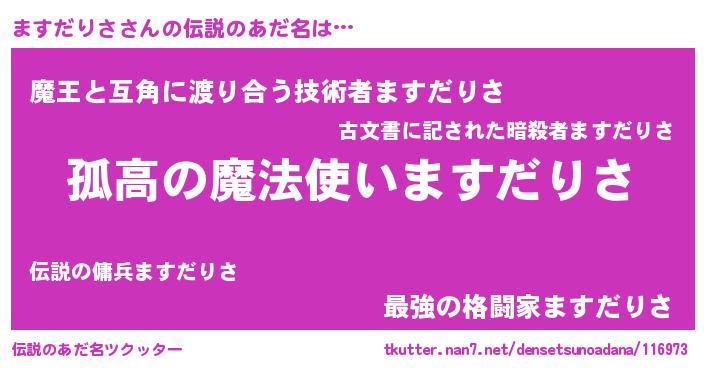 | 胡散臭い通販商品みたいなあだ名 | 『信頼と実績のサプリメント…その名も「ますだりさ」』 |