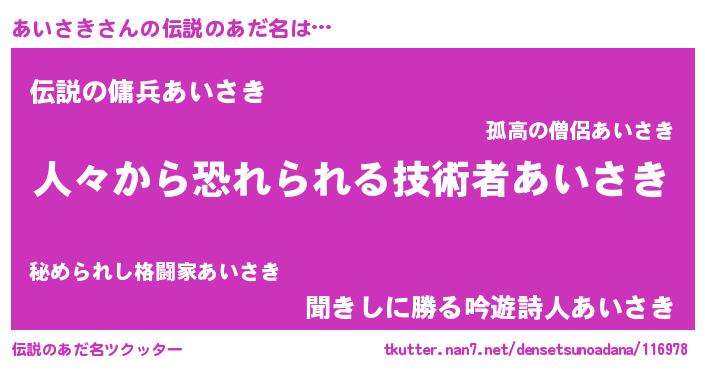 | ポケモン風あだ名 | 『アックウザ』『アイチュウ』 |