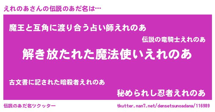 | ヒーロー風カッコイイあだ名 | 『銀牙騎士エレ』『愛の使者えれのあ』 |