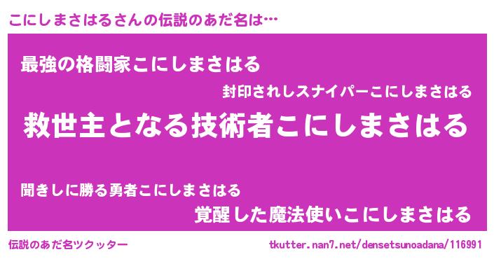 | 意味不明あだ名 | 『自称こにしまさはる』 |