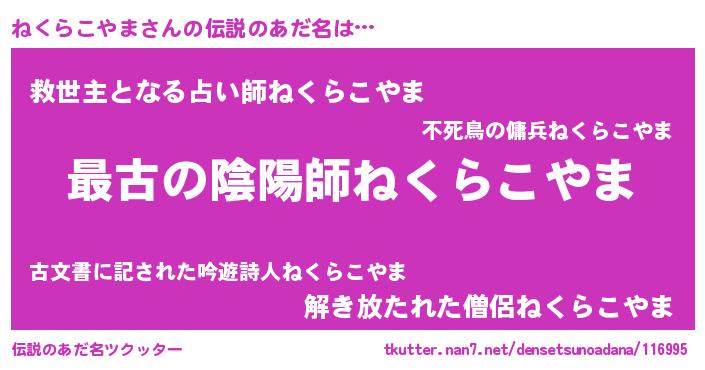 | 意味不明あだ名 | 『自称ねくらこやま』 |